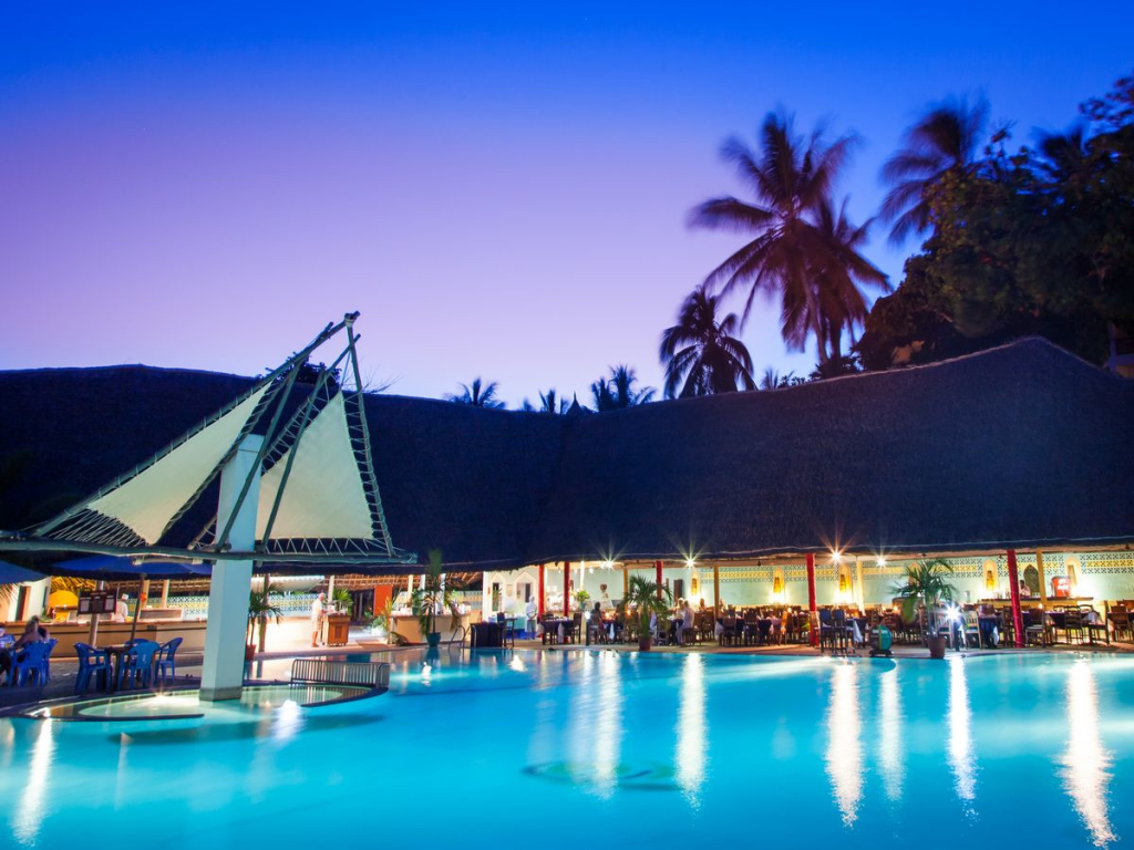 Il complesso ospita 145 camere, immersi in 4 ettari di giardini in diversi edifici. Le camere si suddividono in: 89 Club Room, dispongono di vasca e doccia separate, balcone, aria condizionata split, set per la preparazione di caffè e tè, cassaforte (gratuita), asciugacapelli, sapone per il corpo e una zona notte completamente anti-zanzare; 41 Camere Lamu, unità in stile swahili, alcune delle quali con vista sull'oceano o sul giardino, tutte dotate di aria condizionata split e ventilatore a soffitto, set per la preparazione di caffè e tè, cassaforte (gratuita), asciugacapelli, bagno privato con vasca e doccia o solo doccia, sapone per il corpo, letti singoli (o queen size su richiesta) e zona notte con zanzariera, patio o terrazza. Altre tipologie non disponibili nel nostro catalogo ma su richiesta.
